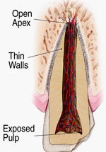Children’s permanent teeth that are not fully developed at the time of the injury need special attention and careful follow up, but not all of them will need root canal treatment. In an immature permanent tooth, the blood supply to the tooth and the presence of stem cells in the region may enable your dentist or endodontist to stimulate continued root growth.